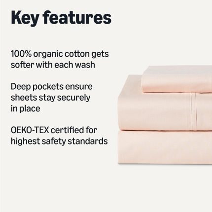 Made with 100% Global Organic Textile Standard (GOTS) certified organic cotton with crisp percale weave for exceptional softness, smooth feel, and long lasting strength
