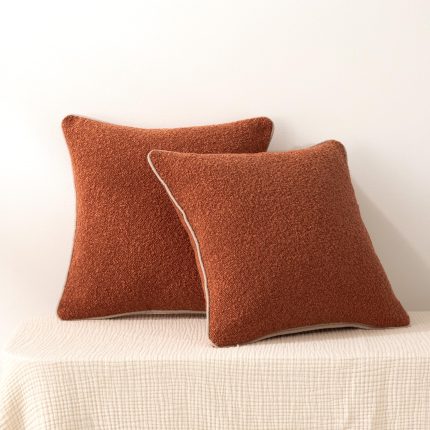 Boucle Throw Pillow Covers for Couch, Living Room, Home Decor with Hidden Zipper, Brown, 18×18in, Pack of 2