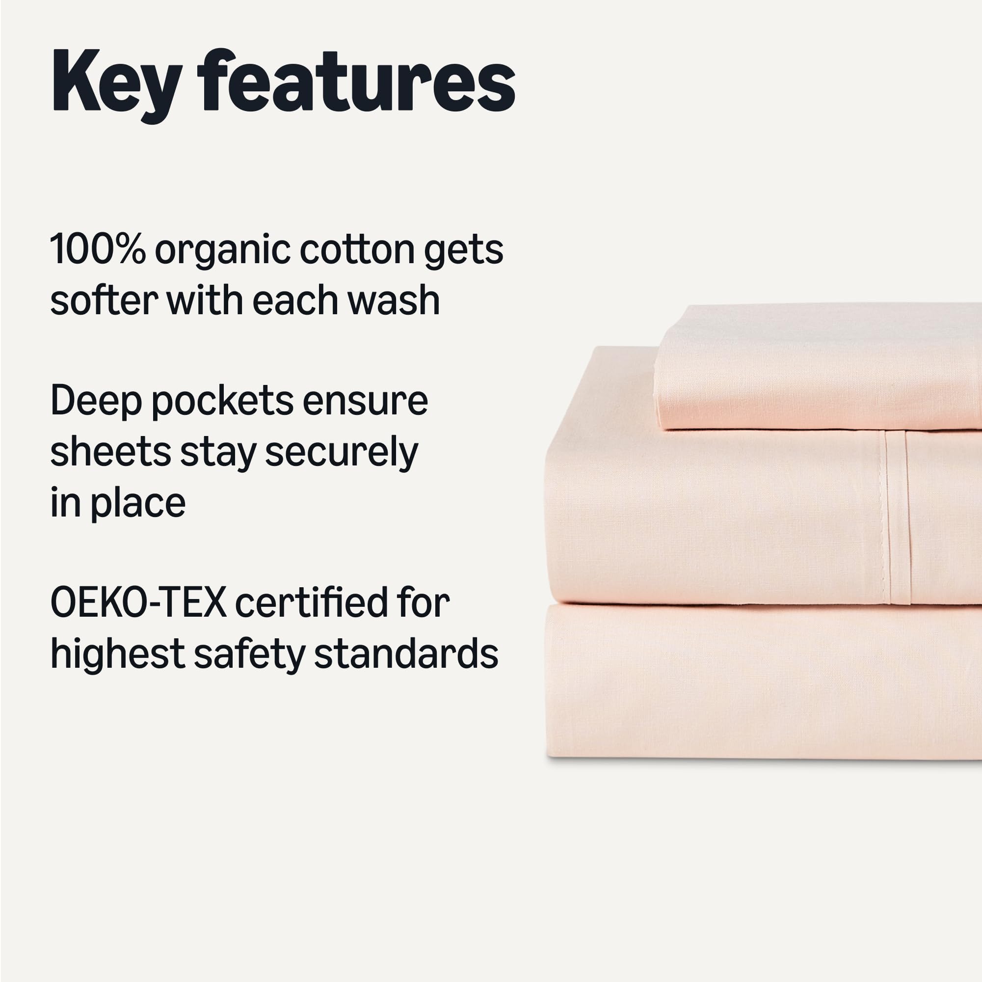 100% Organic Cotton Kids’ Sheet Set with Pillowcase, Twin, Pale Pink