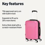 Home Featured Holiday Ready 21″ Hardside Carry-On Luggage with TSA Lock, Hardshell Suitcase With Wheels, Expandable For 25% More Capacity, With Scratch-Resistant Geometric Surface, 4 Multi-directional Wheels, Pink