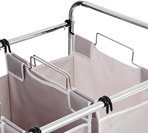 3-Bag Laundry Sorter with Removable Bags, Metal Frame, Washable, Locking Wheels, Gray
