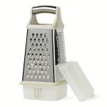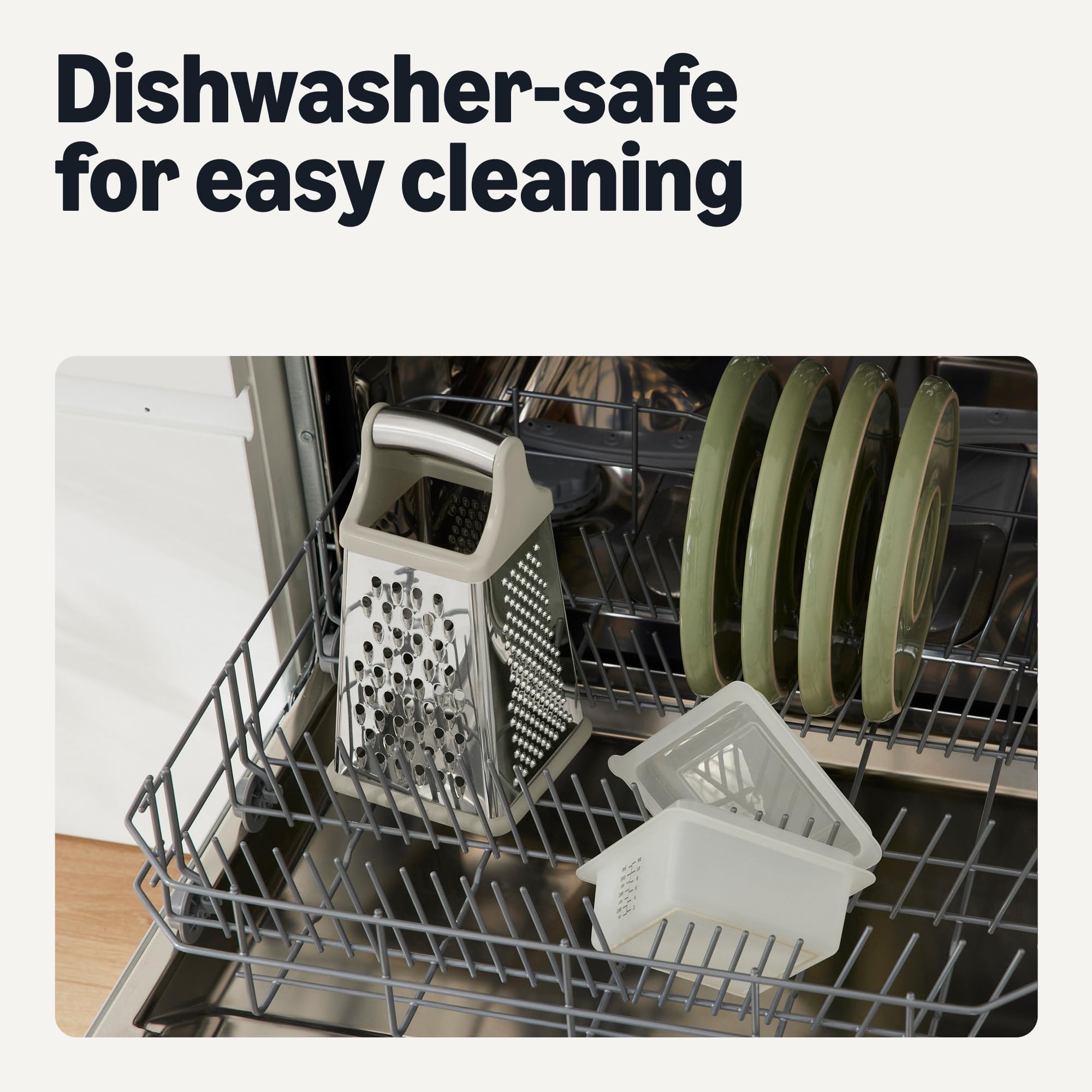 4-Sided Cheese Grater with Measurement Container, Stainless Steel, Dishwasher-Safe