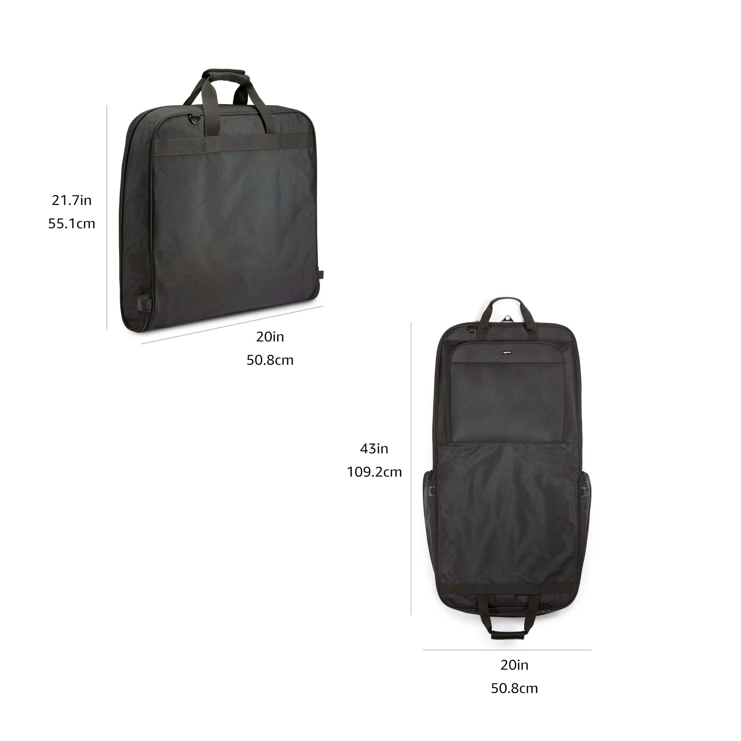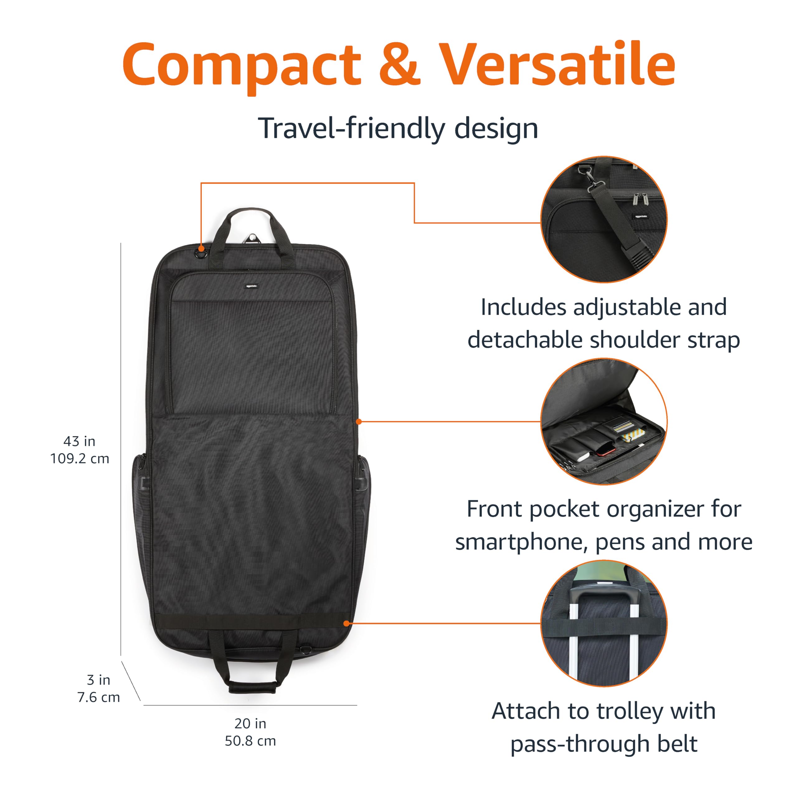 43″ Premium Garment Bag for Travel, Suit Bag with Shoulder Strap for Suits and Dresses, 1680D Polyester Fabric, Exterior/Interior Pockets, Leather-reinforced Corners, Trifold, Black