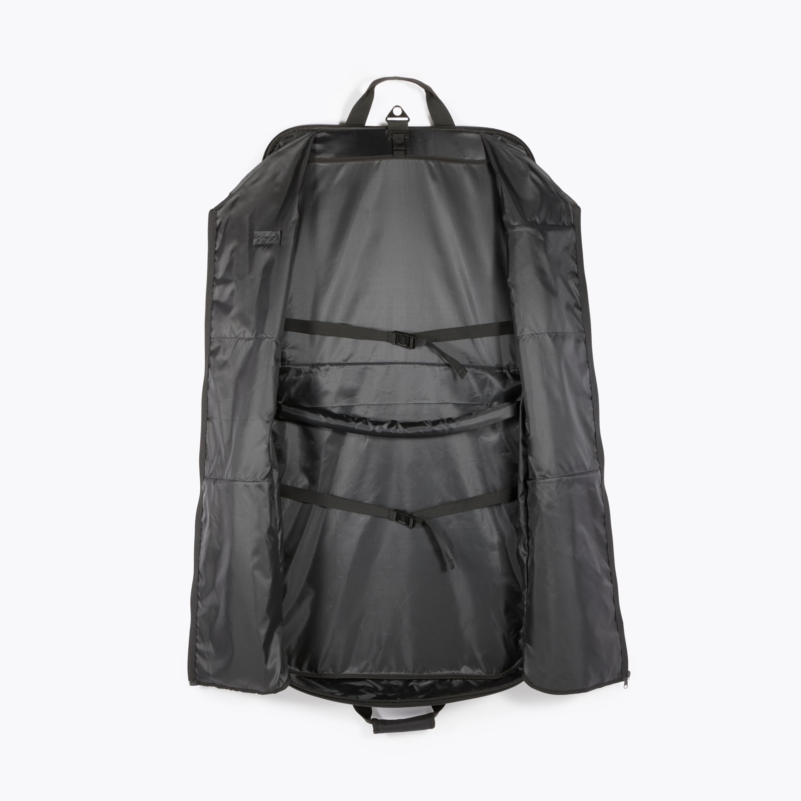 2 buckle tie down straps keep garments securely in place to prevent creases and wrinkles during travel