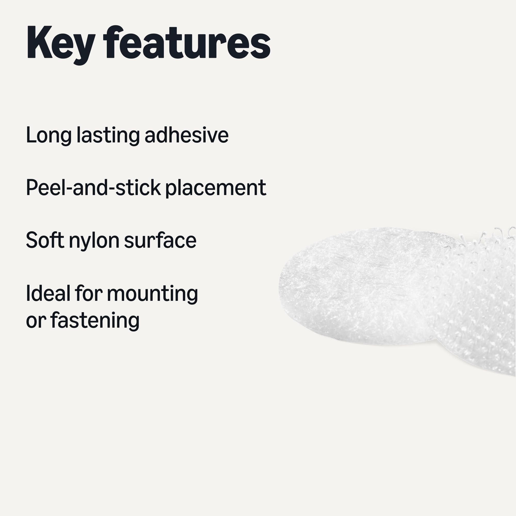 Made of soft, durable nylon on one side and long lasting adhesive on the other