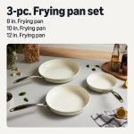 Ceramic Nonstick Cookware, 3-Piece Set of Pans, All Cooktop Friendly, Dishwasher-Safe, Ivory