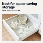 DETACHABLE HANDLES: Cool-touch, interchangeable handles let you seamlessly move from cooking and baking to storing; stackable pieces and lids help maximize space and keep your kitchen organized