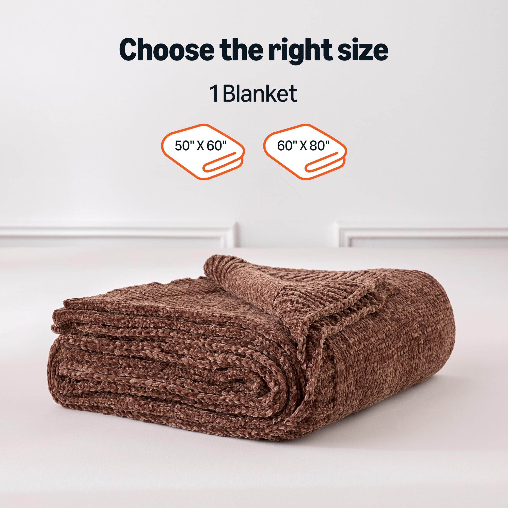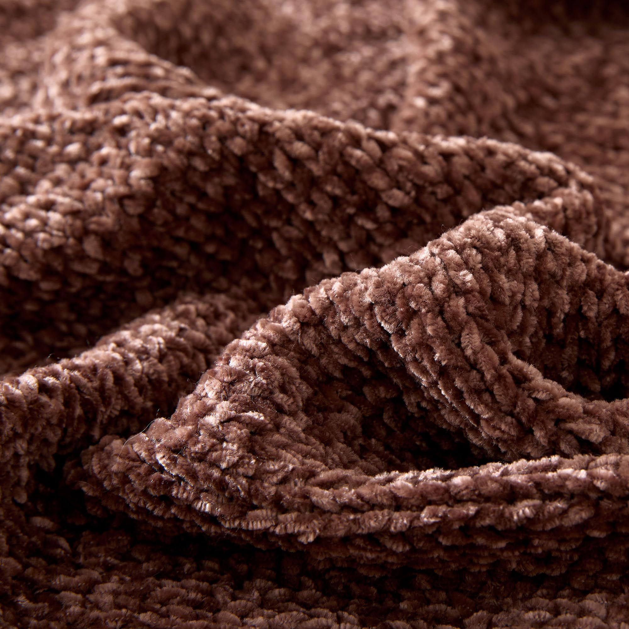 Chunky Chenille Knit Microfiber Throw Blanket for Couch, Bed and Sofa, Soft and Warm Lightweight Jersey, 50″×60″, Brown