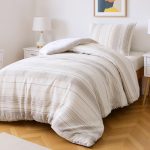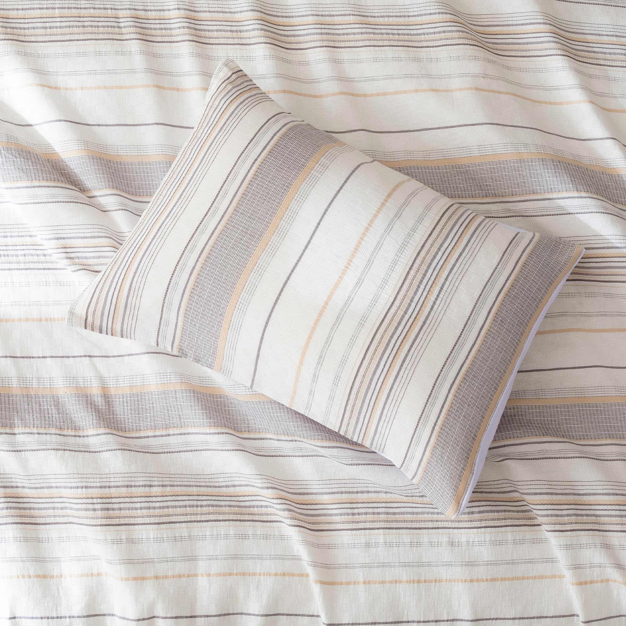 Comforter Set, 2-Piece Jacquard Microfiber Comforter and Pillow Sham, All-Season Bedding, Twin, Beige Striped
