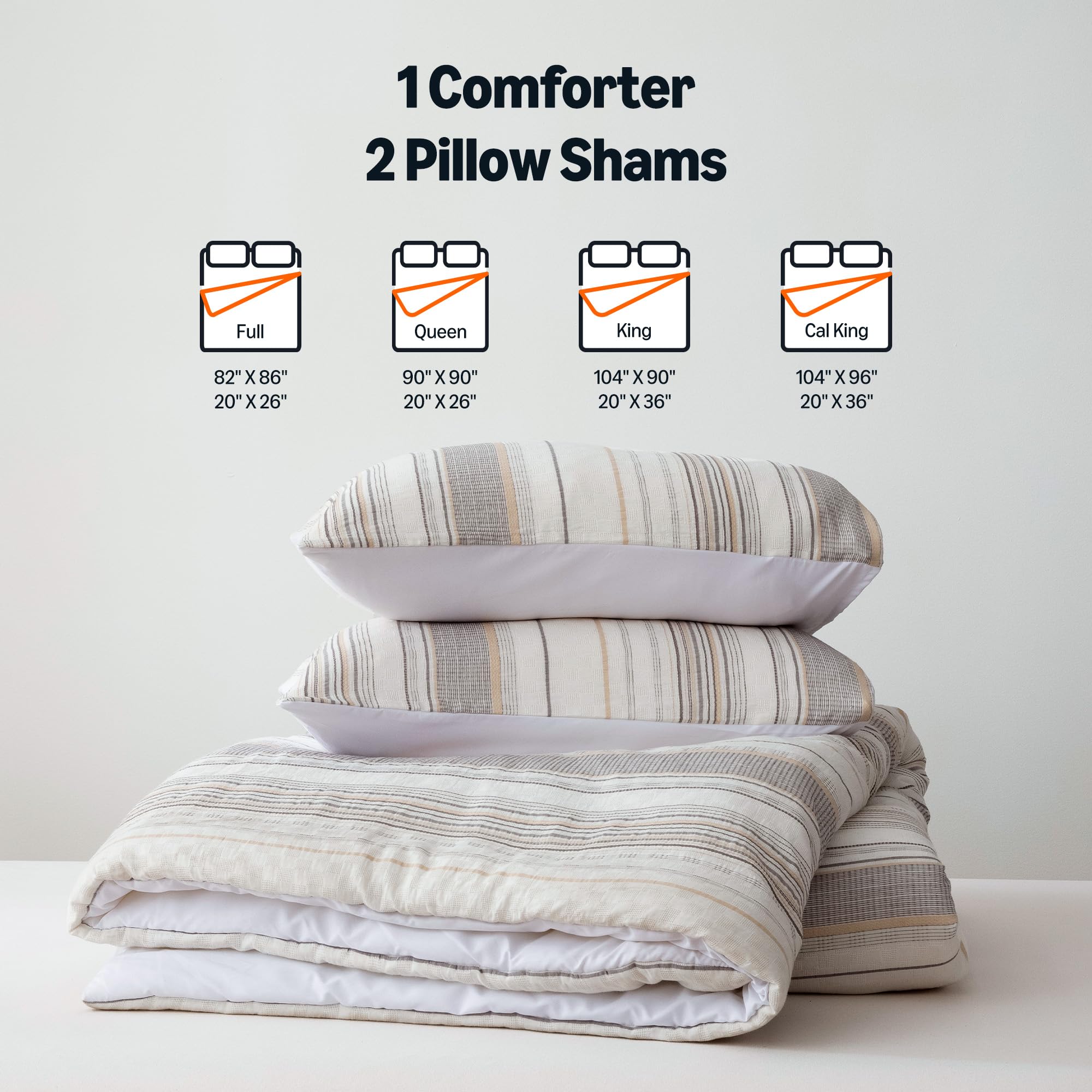 Comforter Set, 3-Piece Jacquard Microfiber Comforter and 2 Pillow Shams, All-Season Bedding, King, Beige Striped