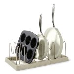 Adjustable, extendable, versatile for holding cookware and bakeware pans/pots/lids, non-slip base, rust-resistant |