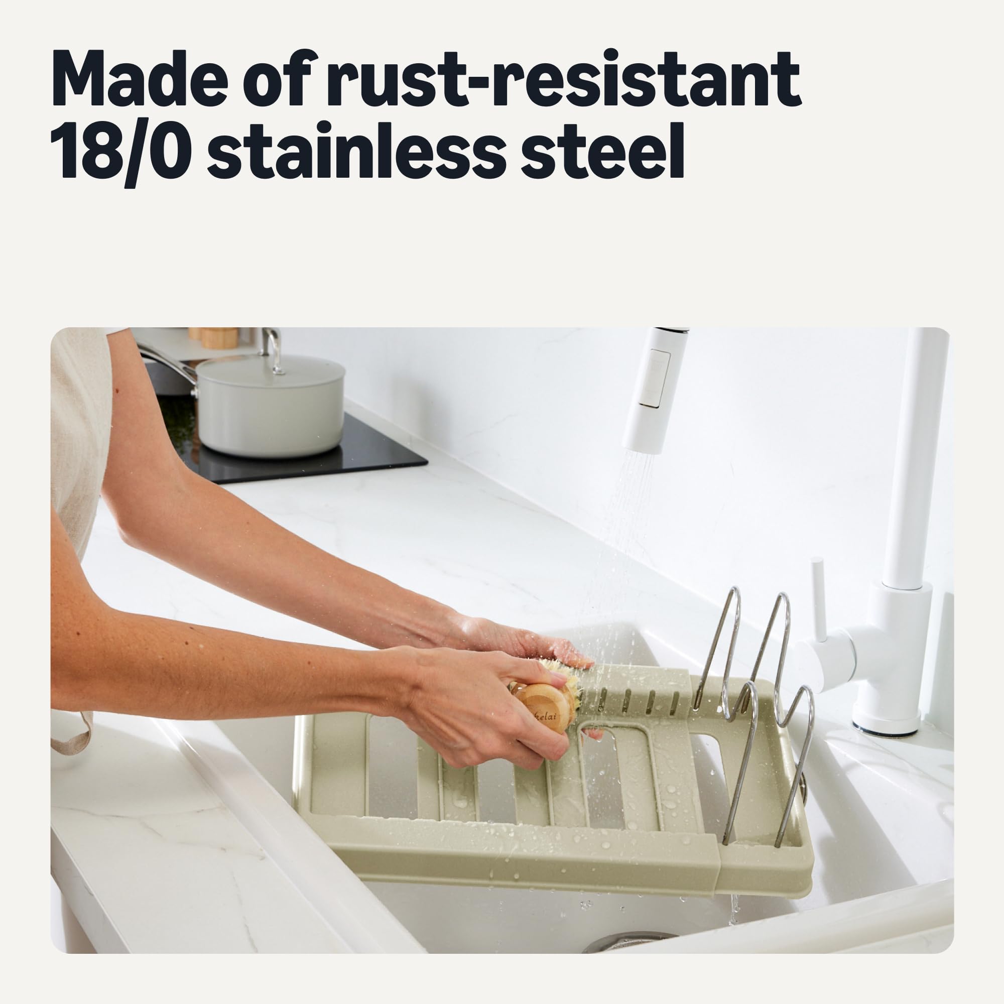 Keep your cookware and bakeware perfectly organized with this expandable stainless steel rack featuring 10 adjustable dividers and non-slip base. The rust-resistant design extends from 12.2 to 20.7 inches, making it ideal for any cabinet size while ensuring easy access to all your kitchen essentials. Amazon Basics are the quality products you count on for all your everyday moments.