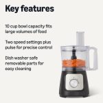 Food Processor and Vegetable Chopper, 10 Cup Bowl, 2-Speed, 500 Watt Motor, Black