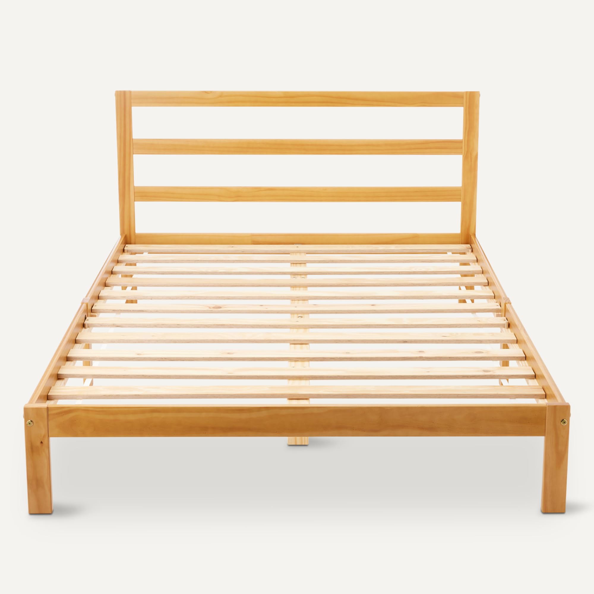 Full Bed Frame with Headboard, Solid Pine Wood with Bed Slats, Full, Walnut