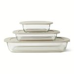 Glass Baking Dishes with BPA-Free Lids, 6-Piece Set, Borosilicate Glass, Dishwasher and Oven-Safe, Linen Gray