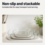 BAKE AND SERVE SET: Includes non-slip, stackable storage lids for easy travel and serving
