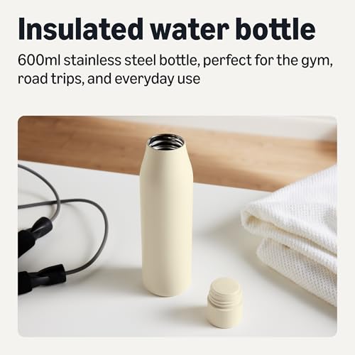Stay hydrated in style with this leak-proof 20 oz stainless steel water bottle that fits perfectly in cup holders. Double-wall insulation keeps drinks at ideal temperatures for hours while the BPA-free construction ensures safe, pure refreshment wherever you go. Amazon Basics are the quality products you count on for all your everyday moments.