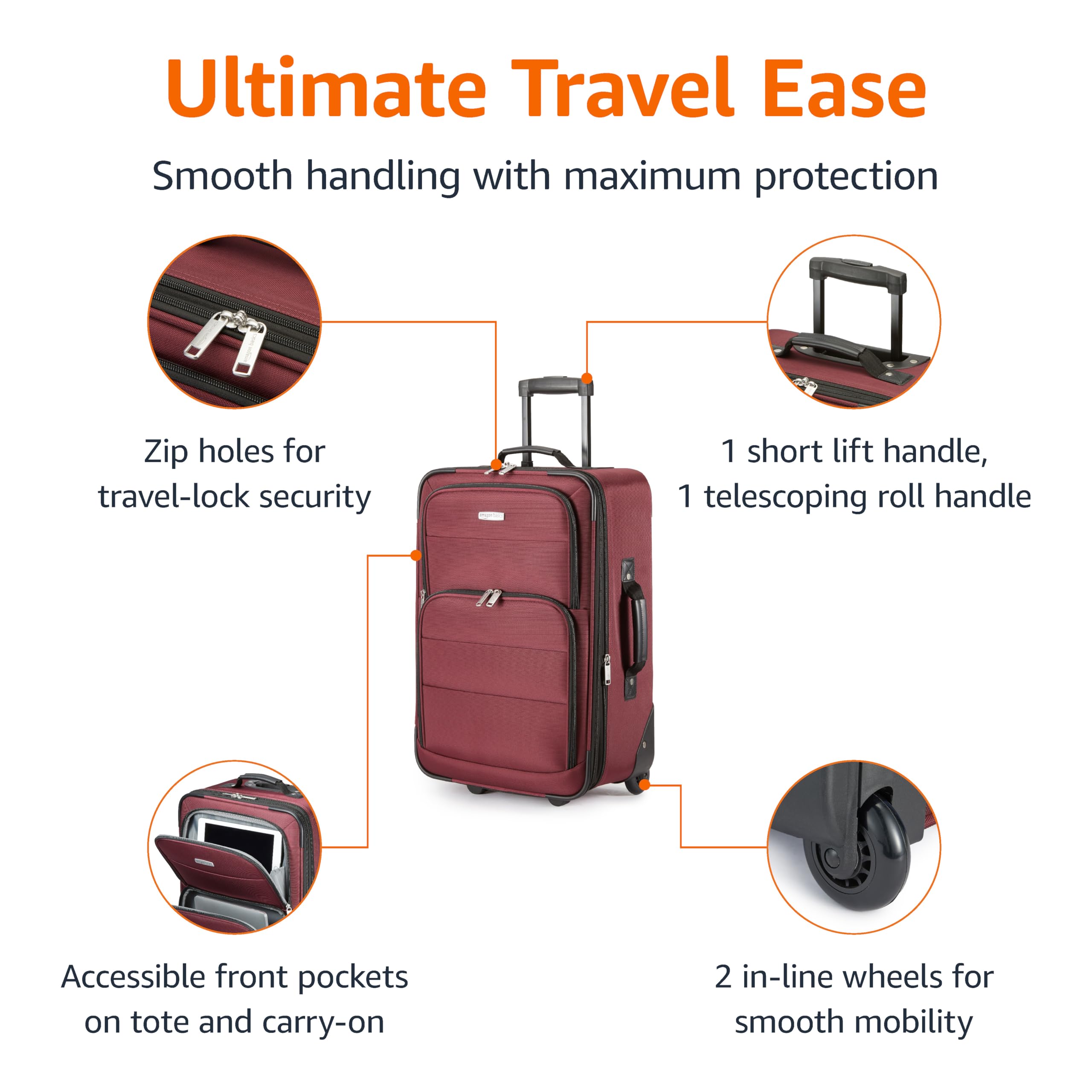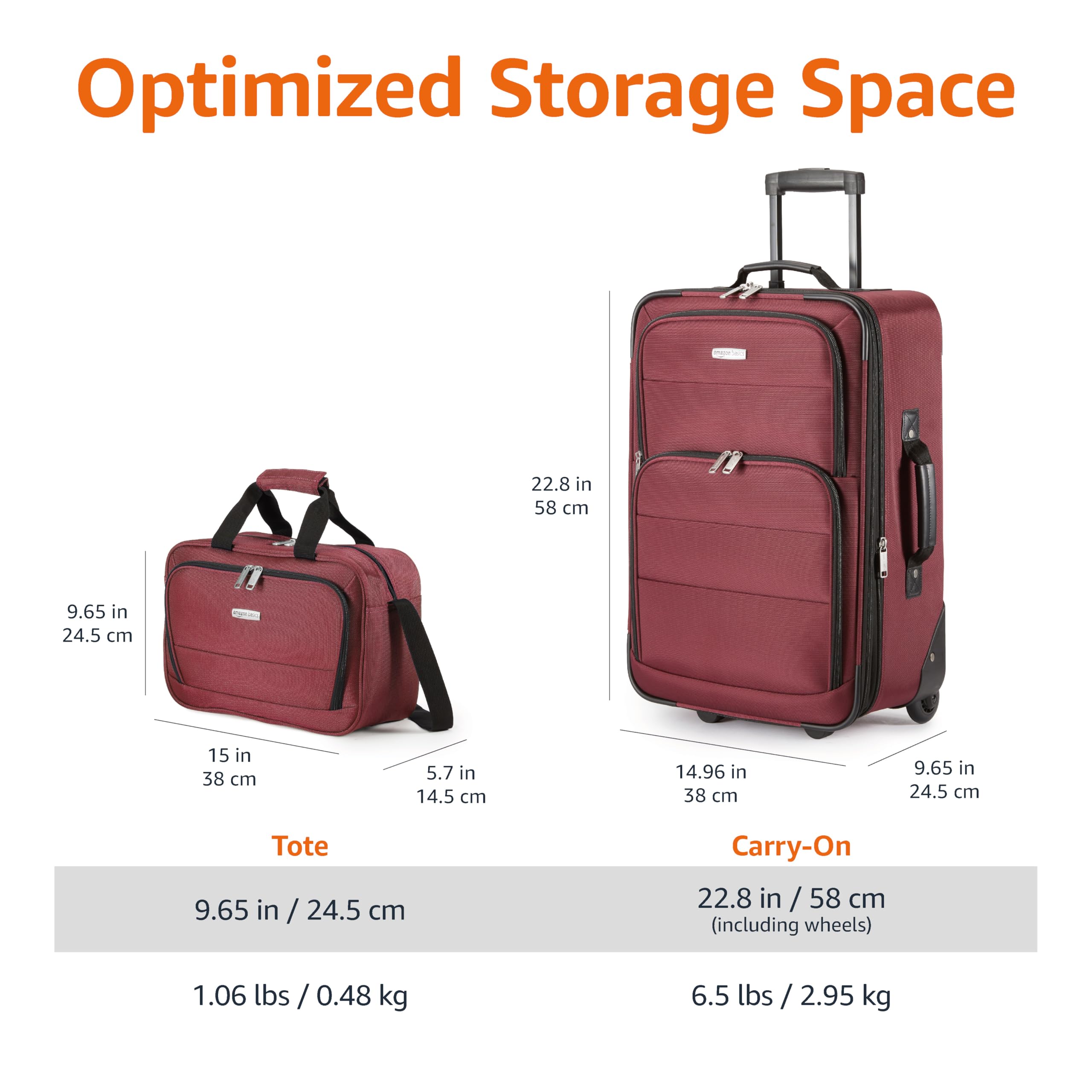 Luggage Sets, Carry-On 23-Inch, tote 15-Inch, Suitcase With Wheels, Expandable Extra Space (+15%), Front Pockets and Telescopic Handle, Burgundy