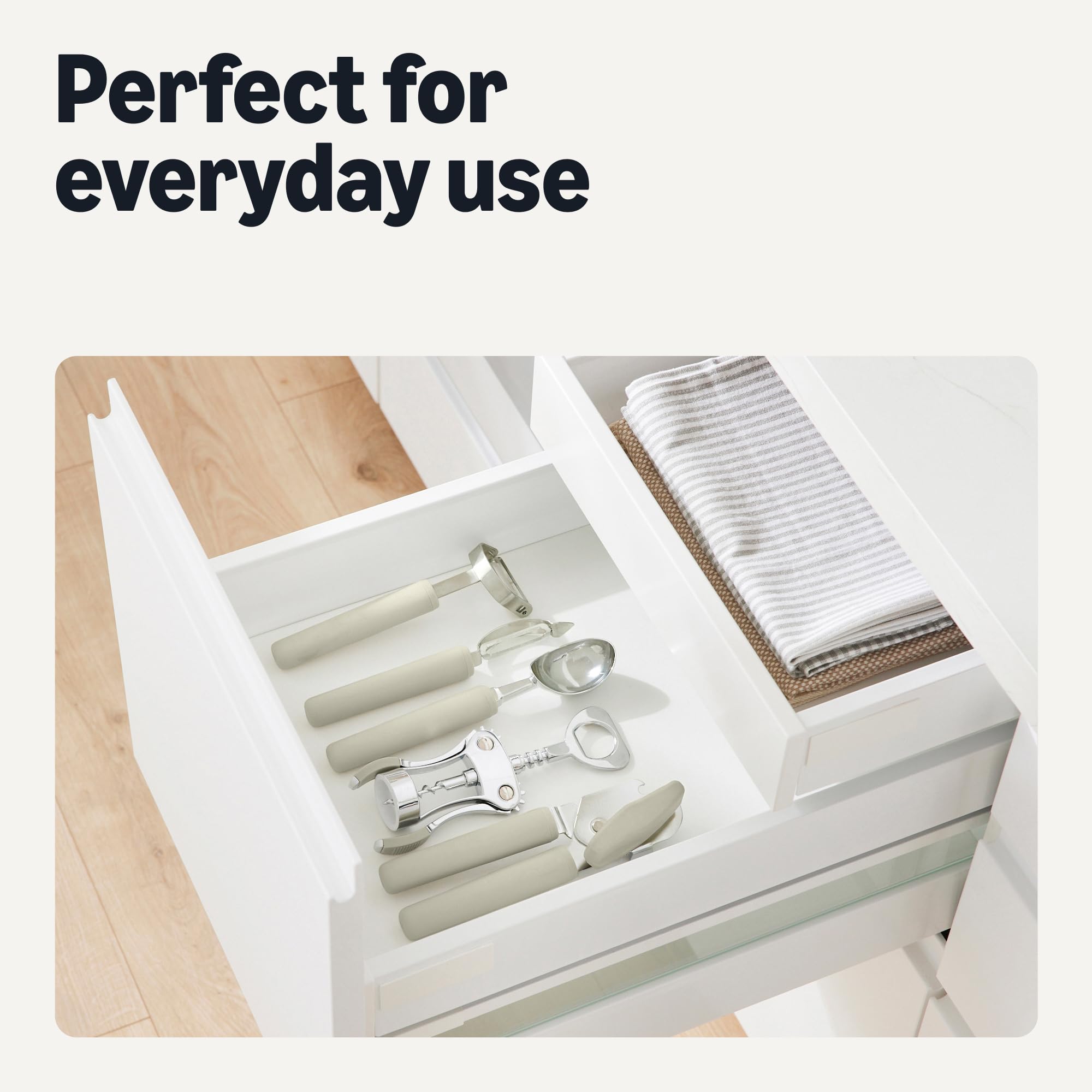 Manual Can Opener with Stainless Steel Construction, Soft Grip Handle, Dishwasher Safe, Linen Gray