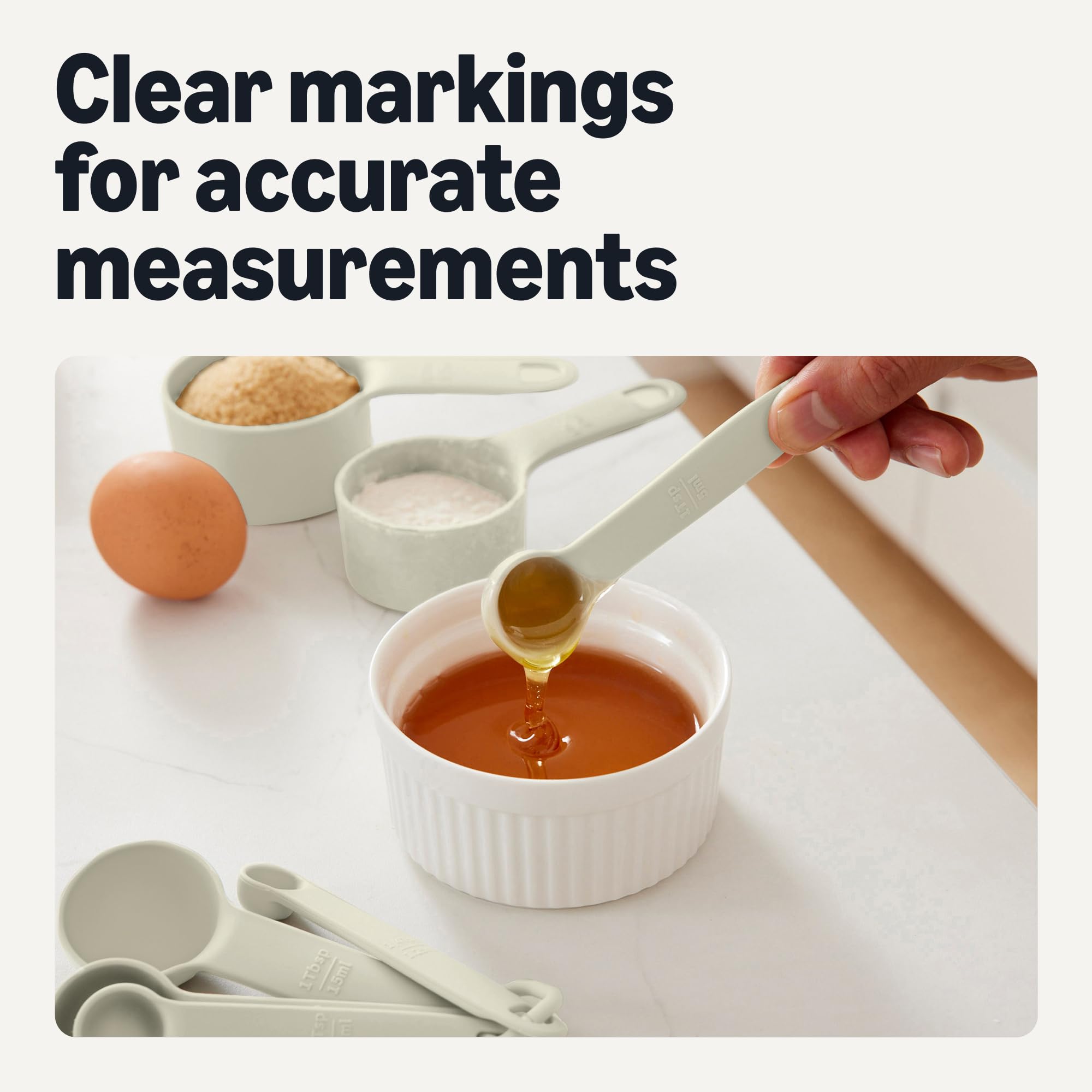 EASY STORAGE: Loop design keeps cups and spoons organized and easy to store together