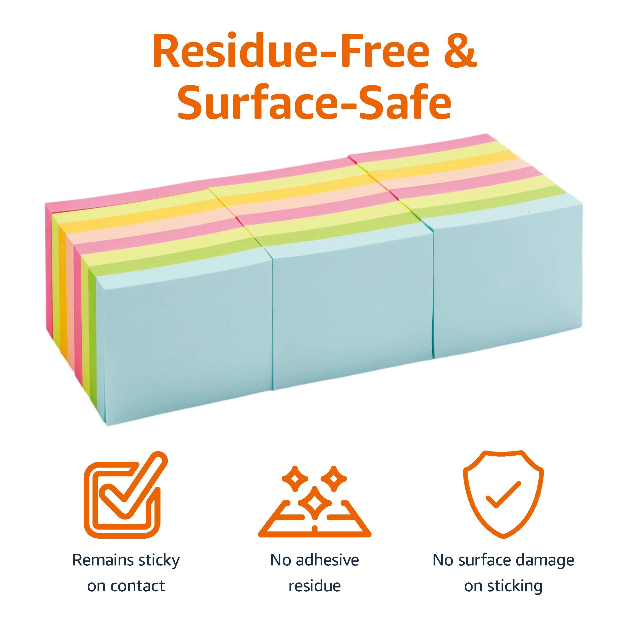 Removes effortlessly from the pad, but remains sticky on surfaces; won’t damage surfaces or leave an adhesive residue