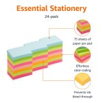 Includes 24 mini notepads with 75 sheets of paper per pad (1800 sheets total) in an assortment of colors