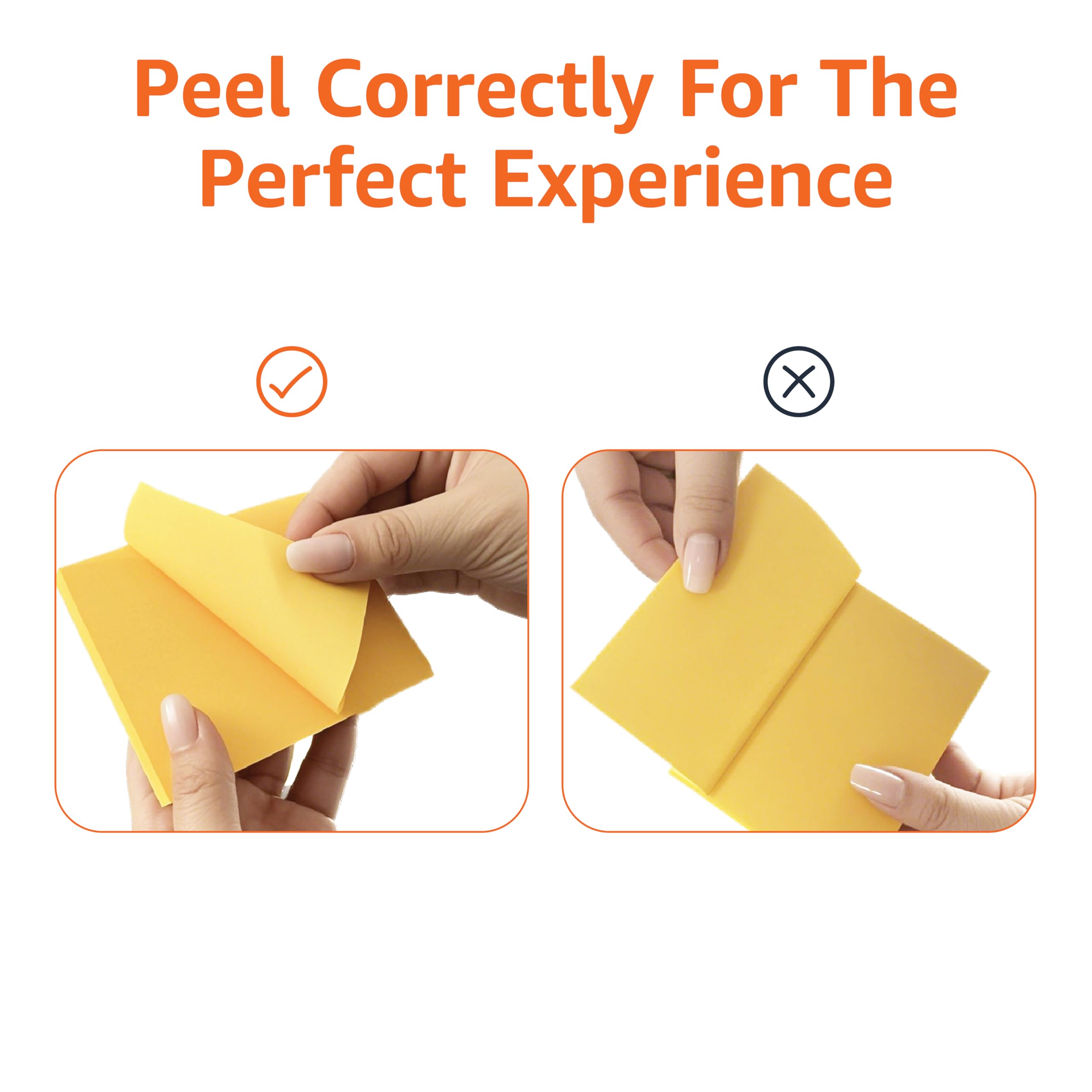 Note: For best results, remove paper from pad by slightly lifting from middle of bottom edge and pulling towards you, away from sticky edge in a straight motion (versus from bottom corner, pulling up diagonally and causing it to bend and curl); this helps ensure secure sticky placement
