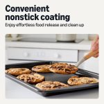 This versatile 3-piece nonstick baking sheet set conducts heat evenly for perfect results and stacks neatly for storage. Oven-safe up to 428°F and dishwasher-safe, these durable sheets make baking and cleanup effortless. Amazon Basics are the quality products you count on for all your everyday moments.
