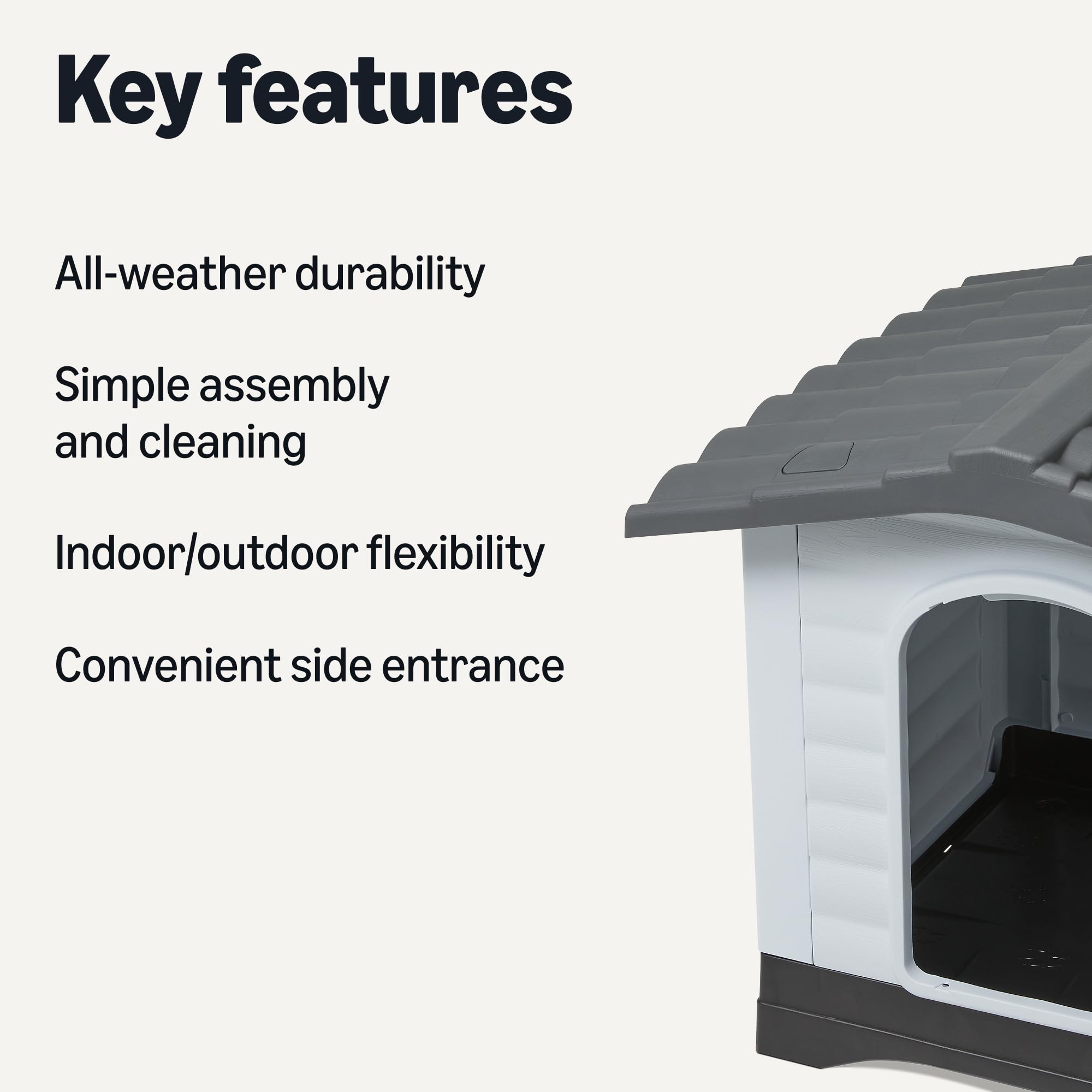 Built Earth-Friendly, Built to Last: Constructed from recycled plastic materials, this eco-conscious dog house delivers premium durability while helping reduce environmental impact – a sustainable choice for responsible pet parents
