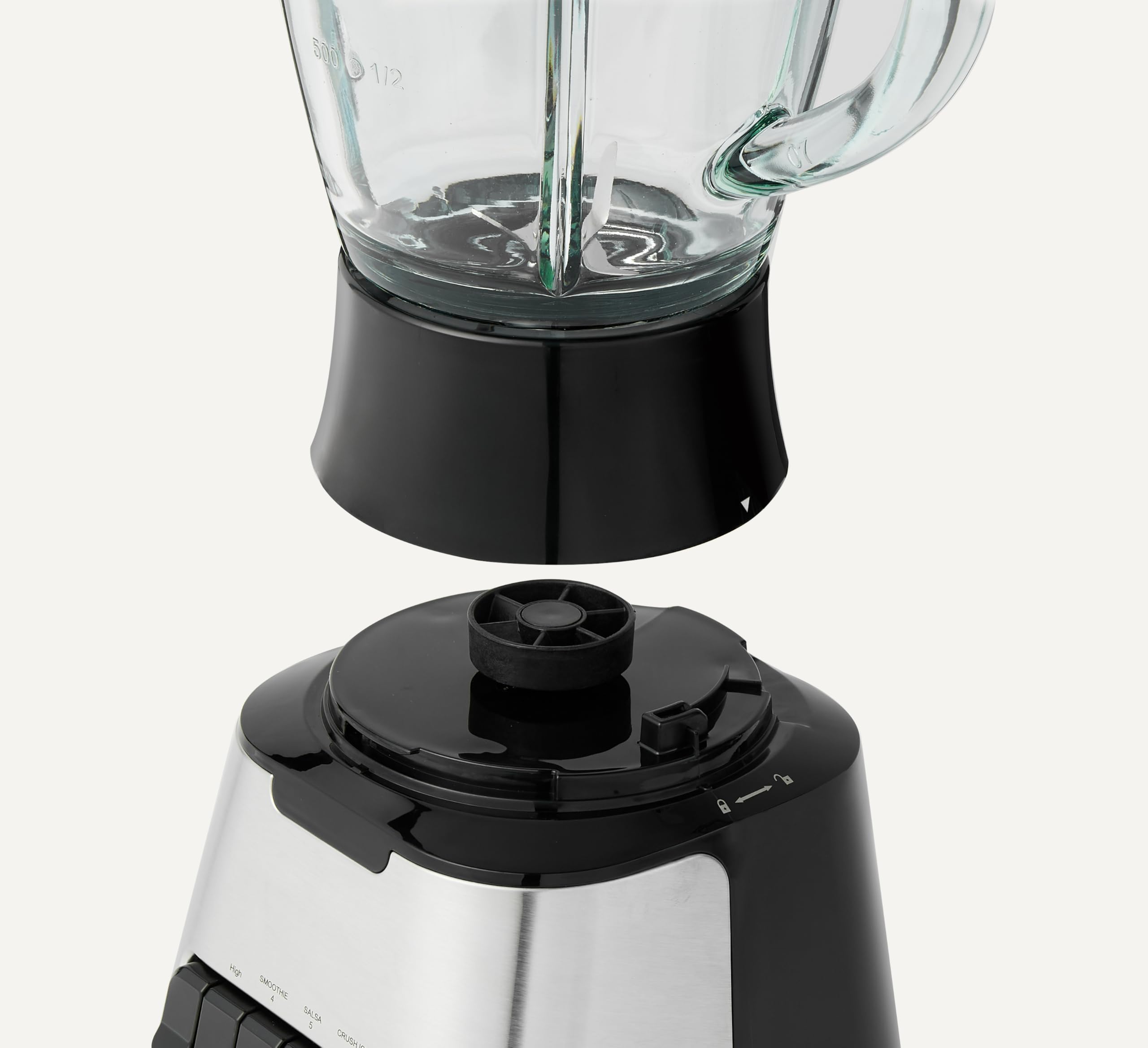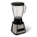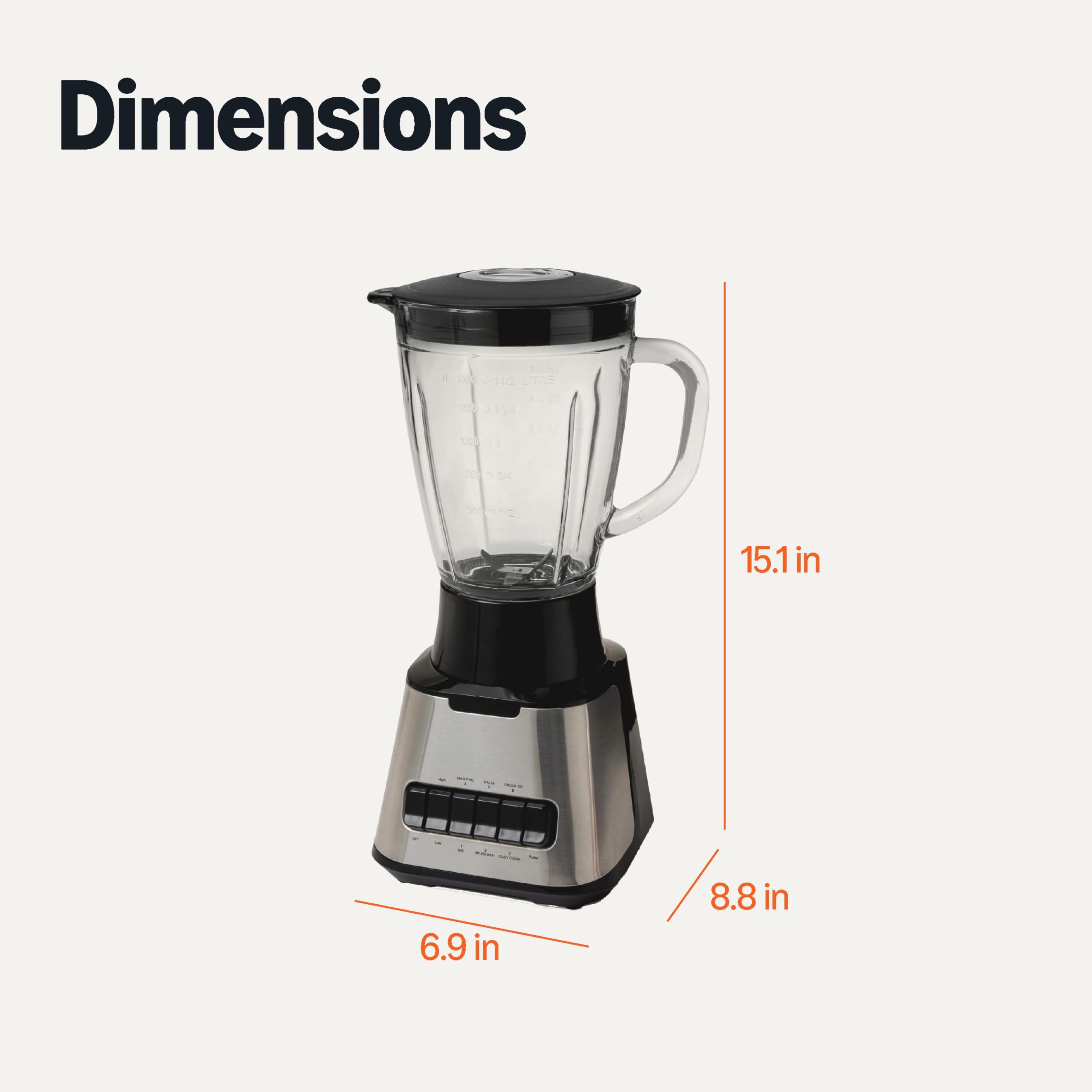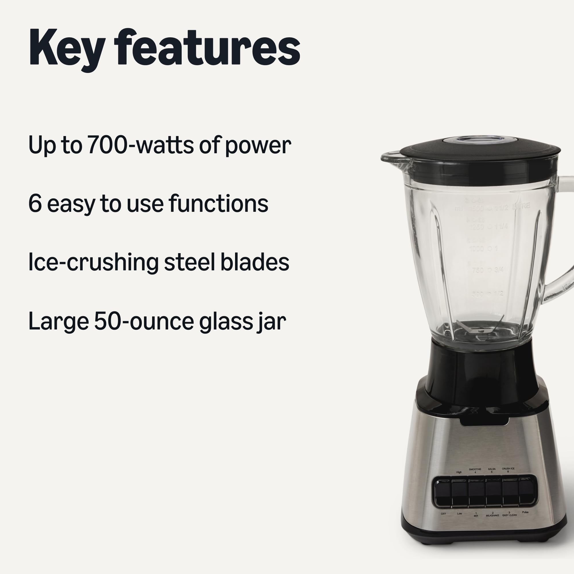 Powerful 700W Countertop Blender with 6-Cup (50 Fl. Oz) Glass Jar, 6 Pre-Programmed Functions, Ice Crush, Stainless Steel Blades, Black & Silver