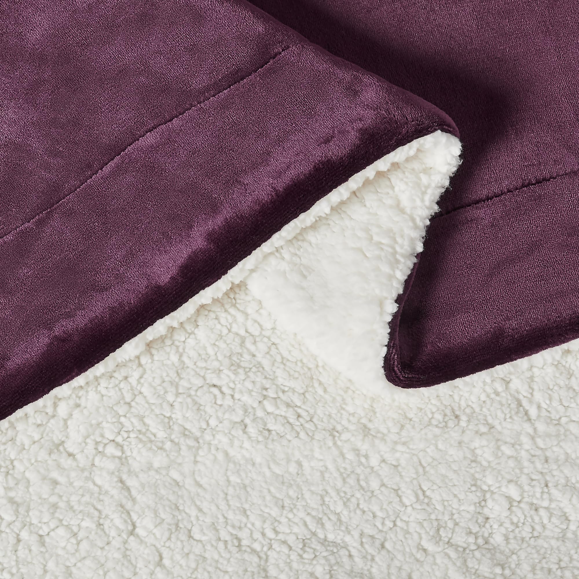 Reversible Sherpa Throw Blanket, Plum, 50″x60″