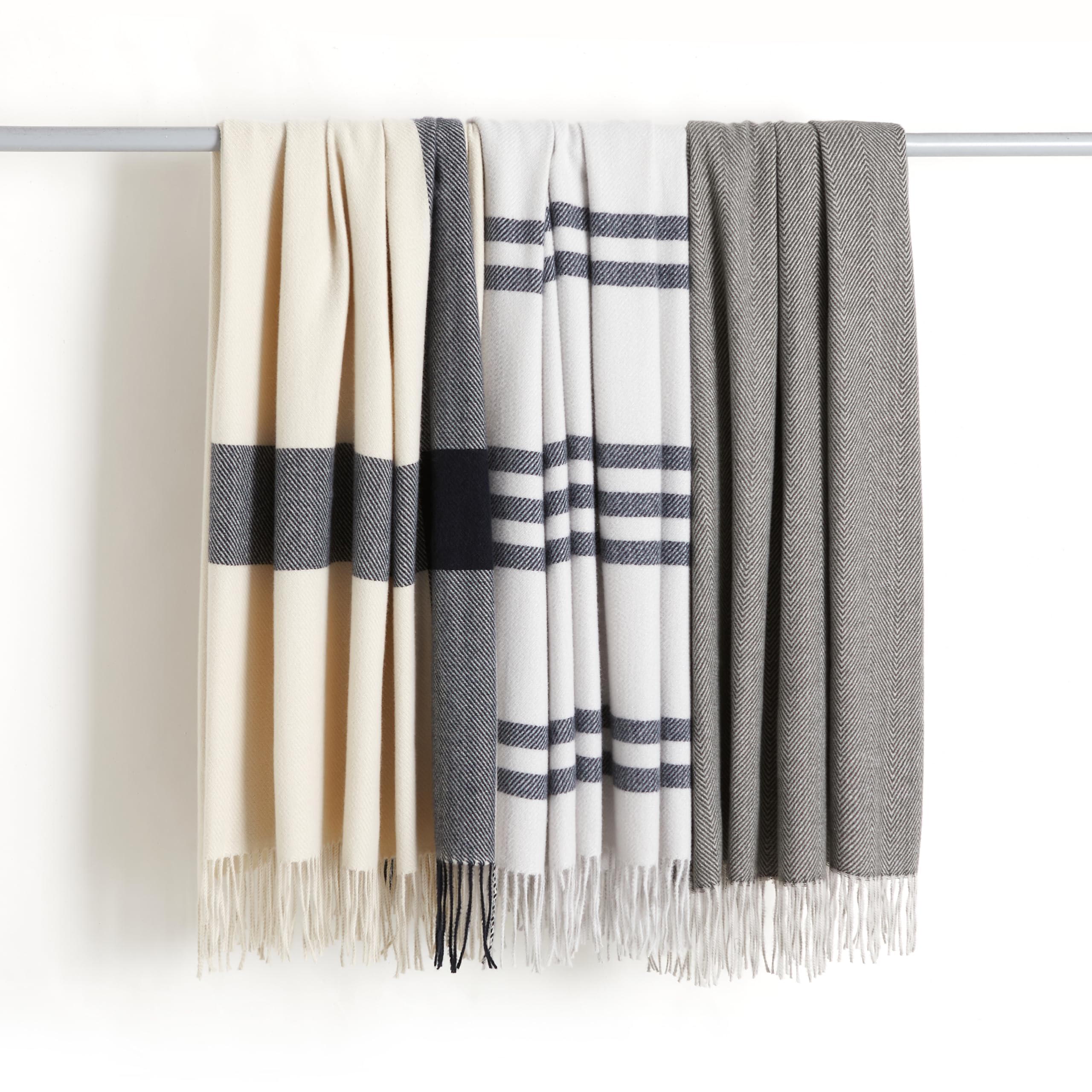 50 x 60-inch cozy throw blanket with textured cross-check pattern and fringed edges