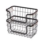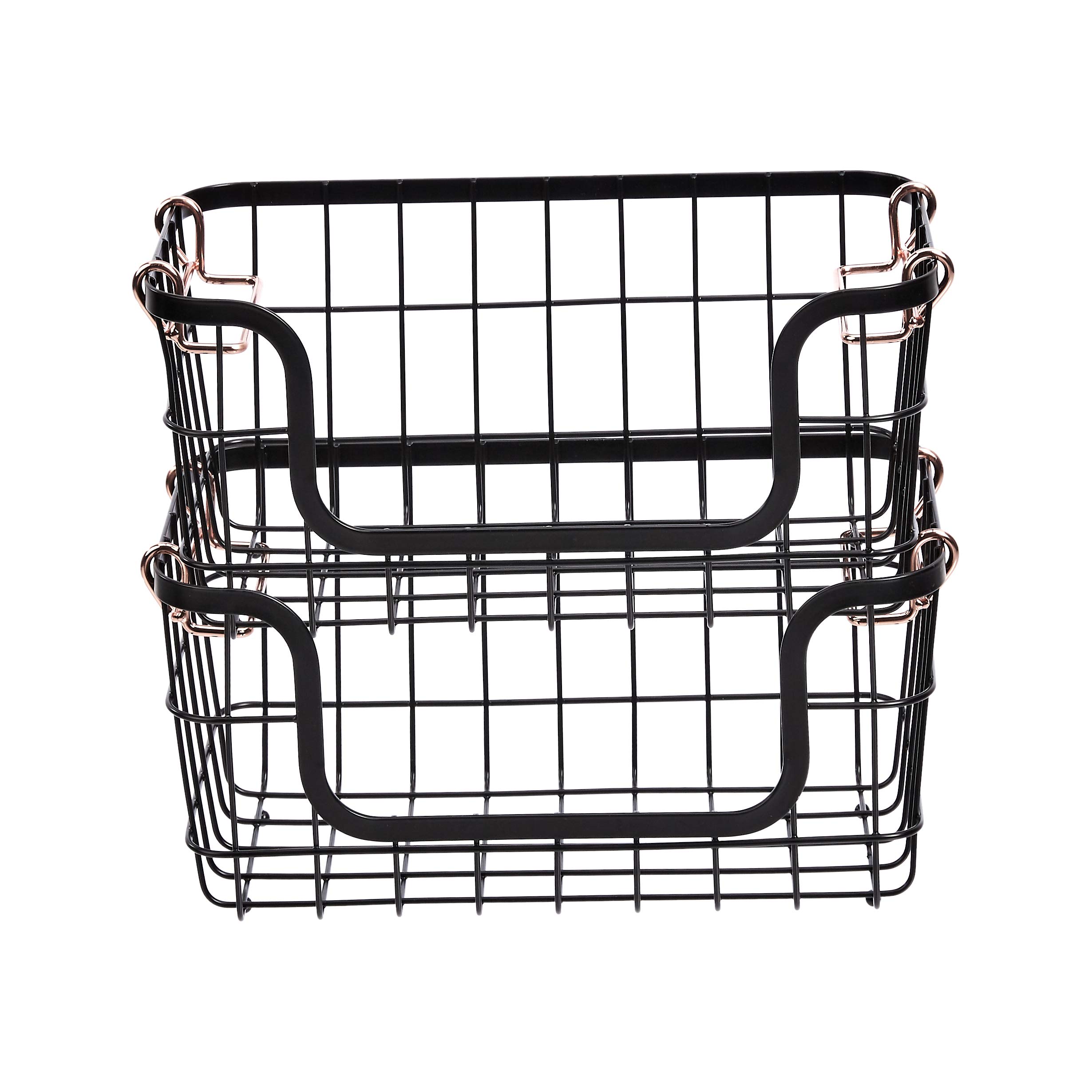 Stackable Metal Wire Rectangular Storage Baskets for Kitchen, Bathroom or Pantry Organizing, 2 Count, Black