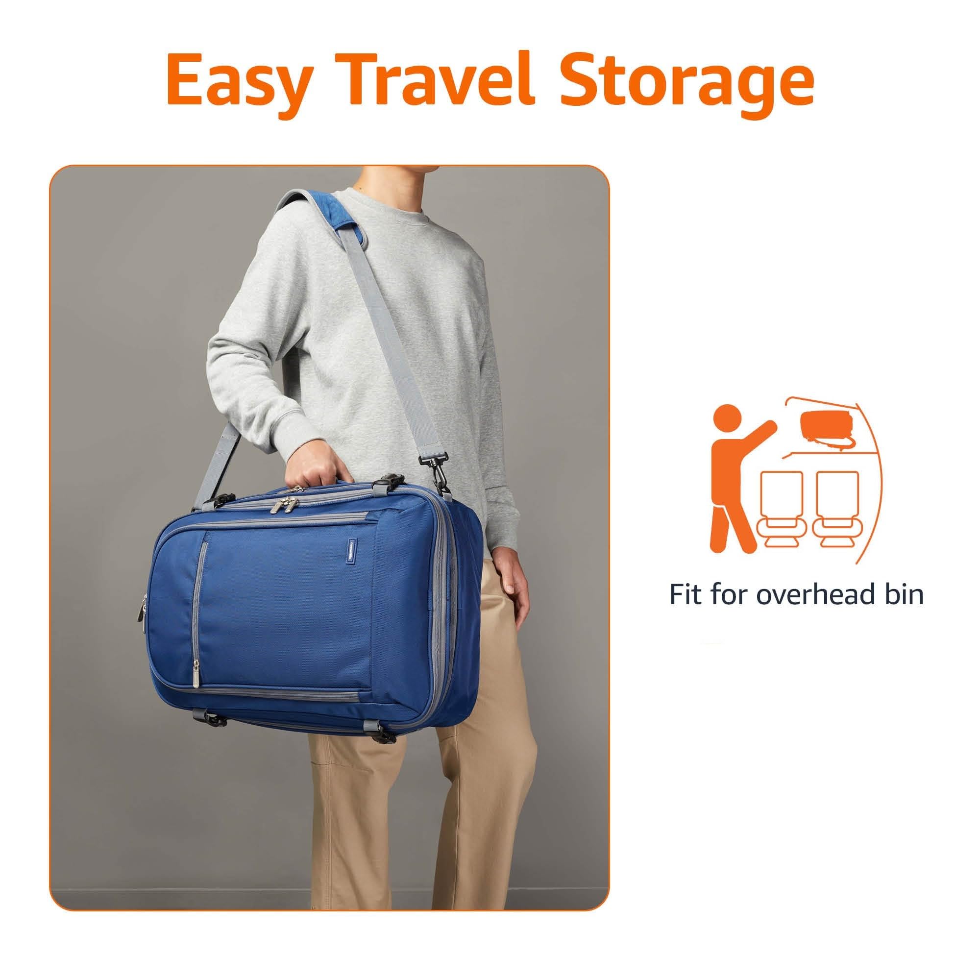 Travel Backpack, Carry On Backpack, With Laptop Compartment, 40L Capacity, Expandable for 10% Extra Space, Backpack & Shoulder Bag Dual Use, 15.8″W x 21.5″H x 8.3″D, Navy