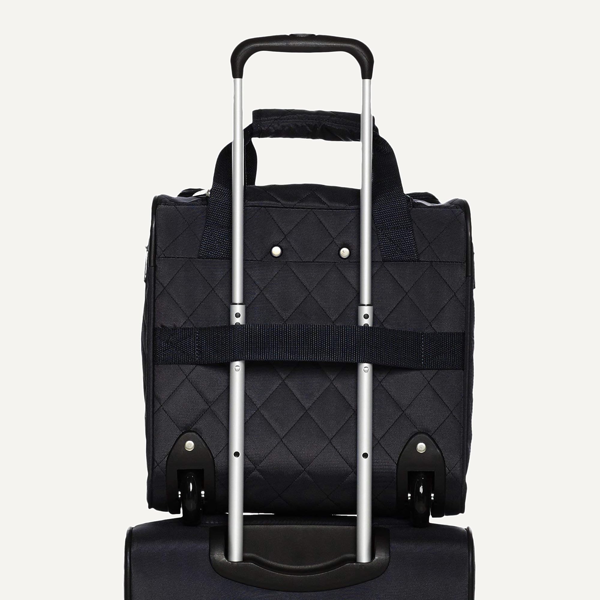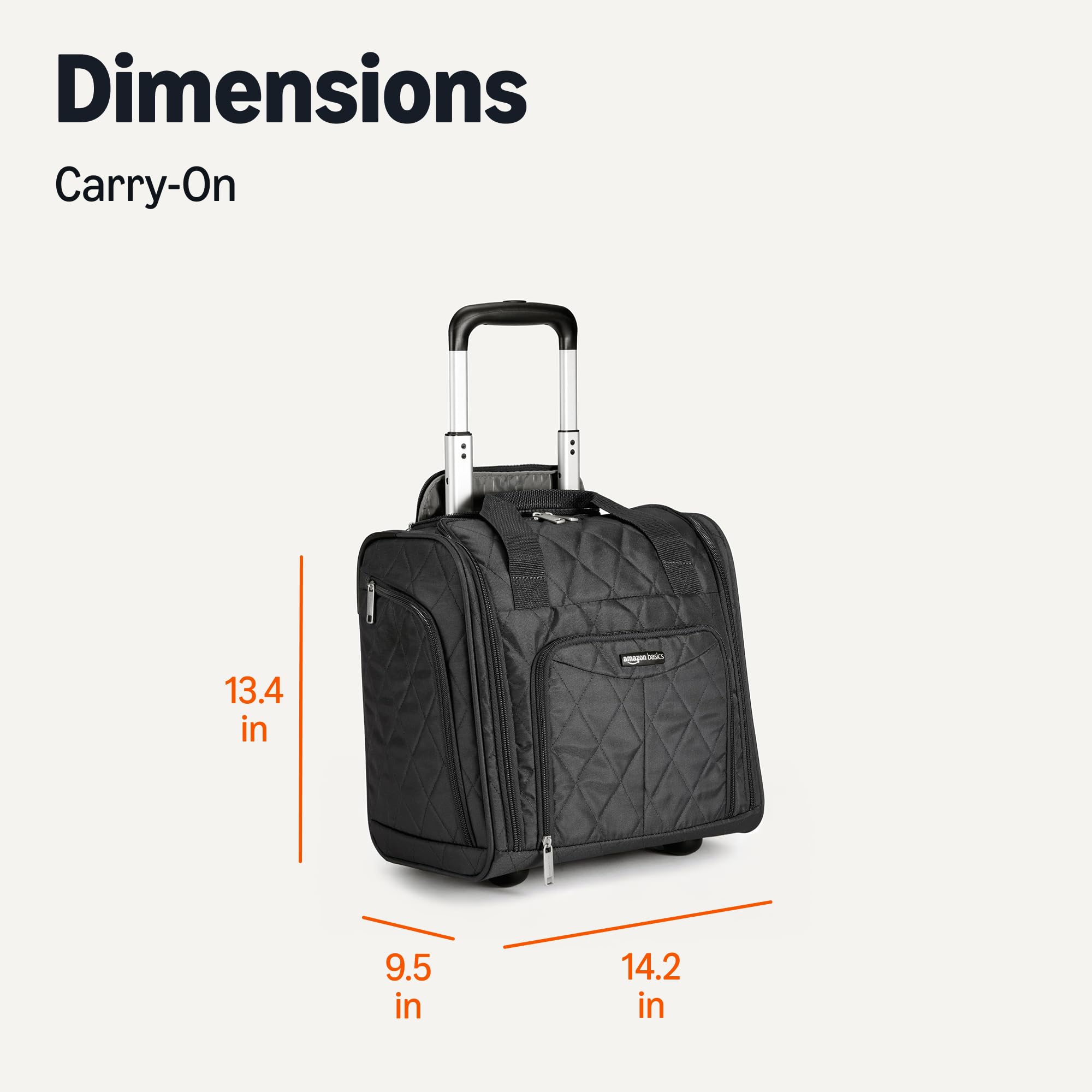 Underseat Carry On Luggage with Wheels – 14″ Rolling Travel Bag, Black Quilted