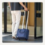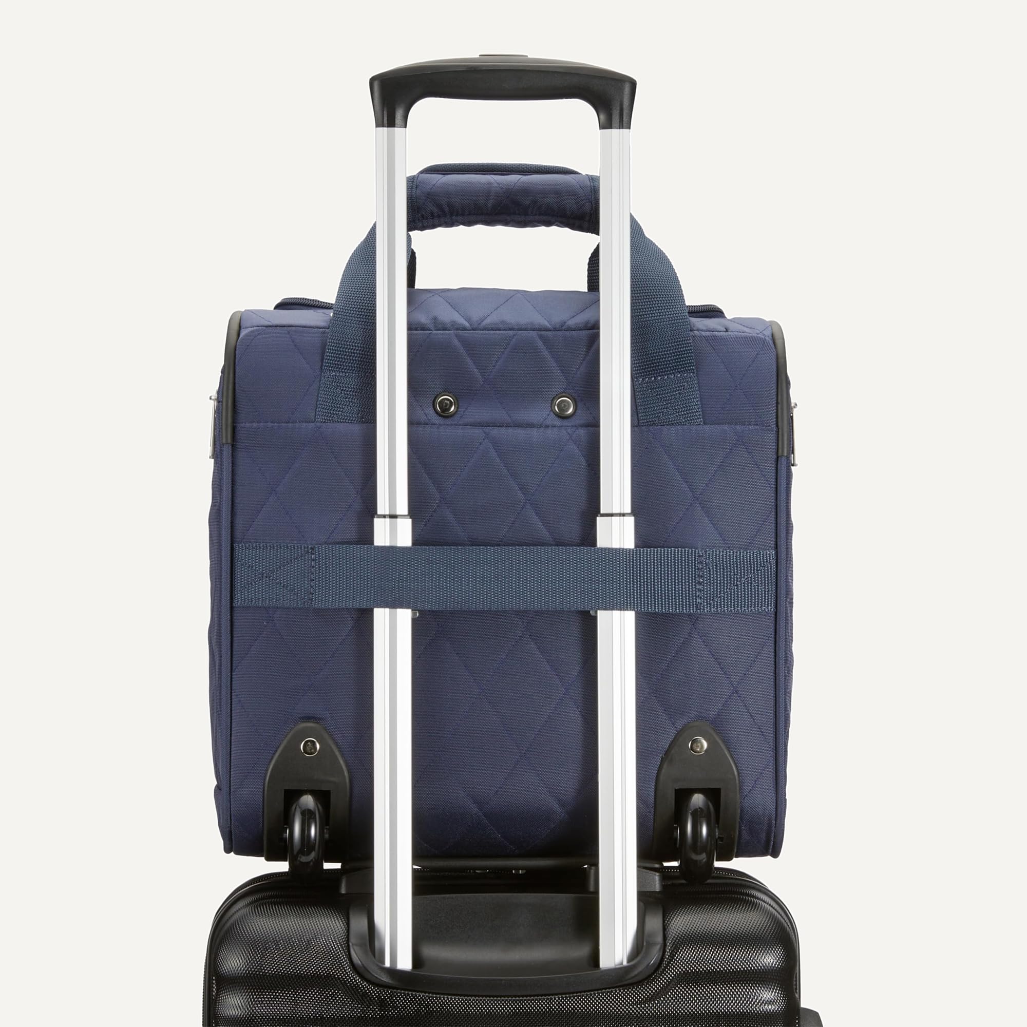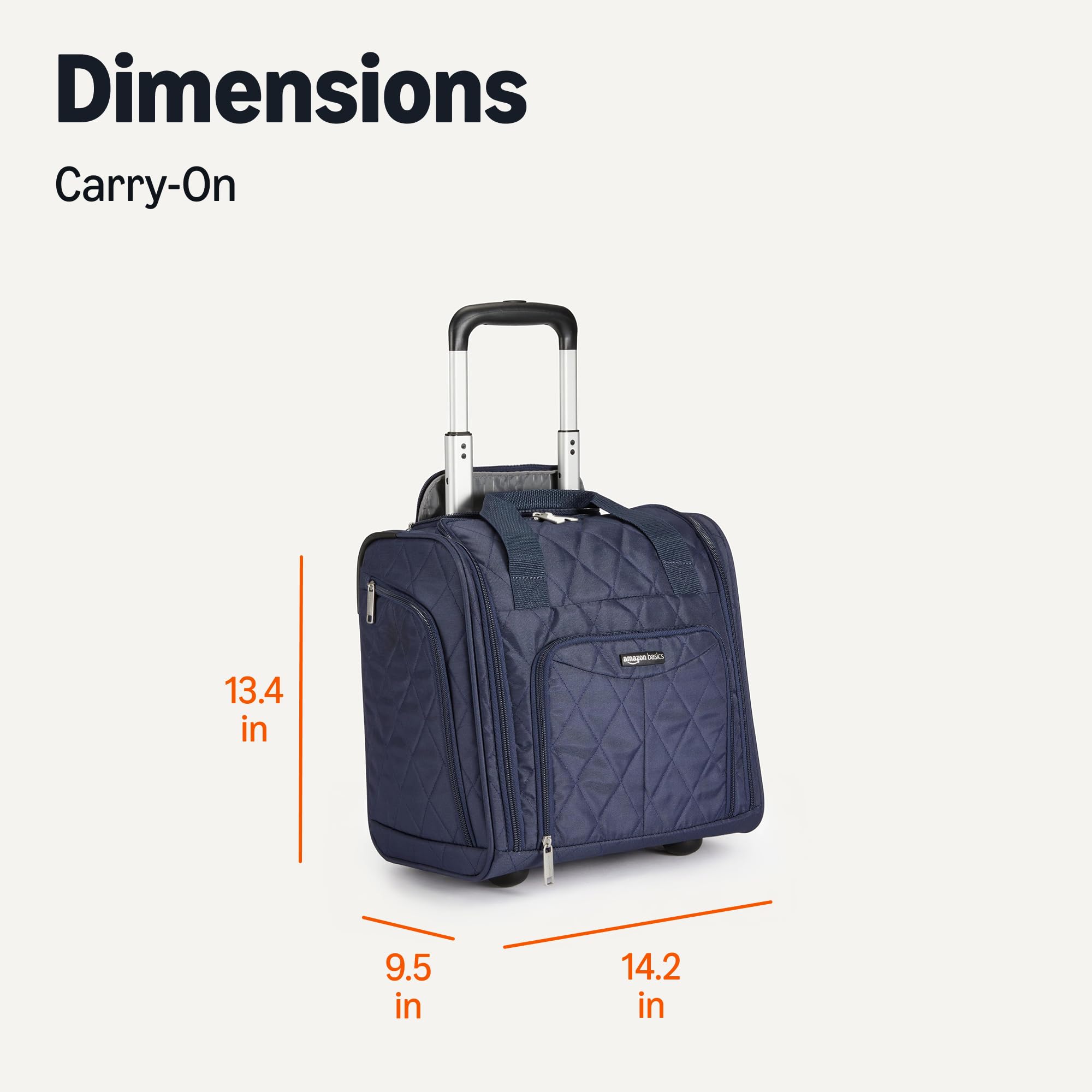 Underseat Carry On Luggage with Wheels – 14″ Rolling Travel Bag, Navy Quilted