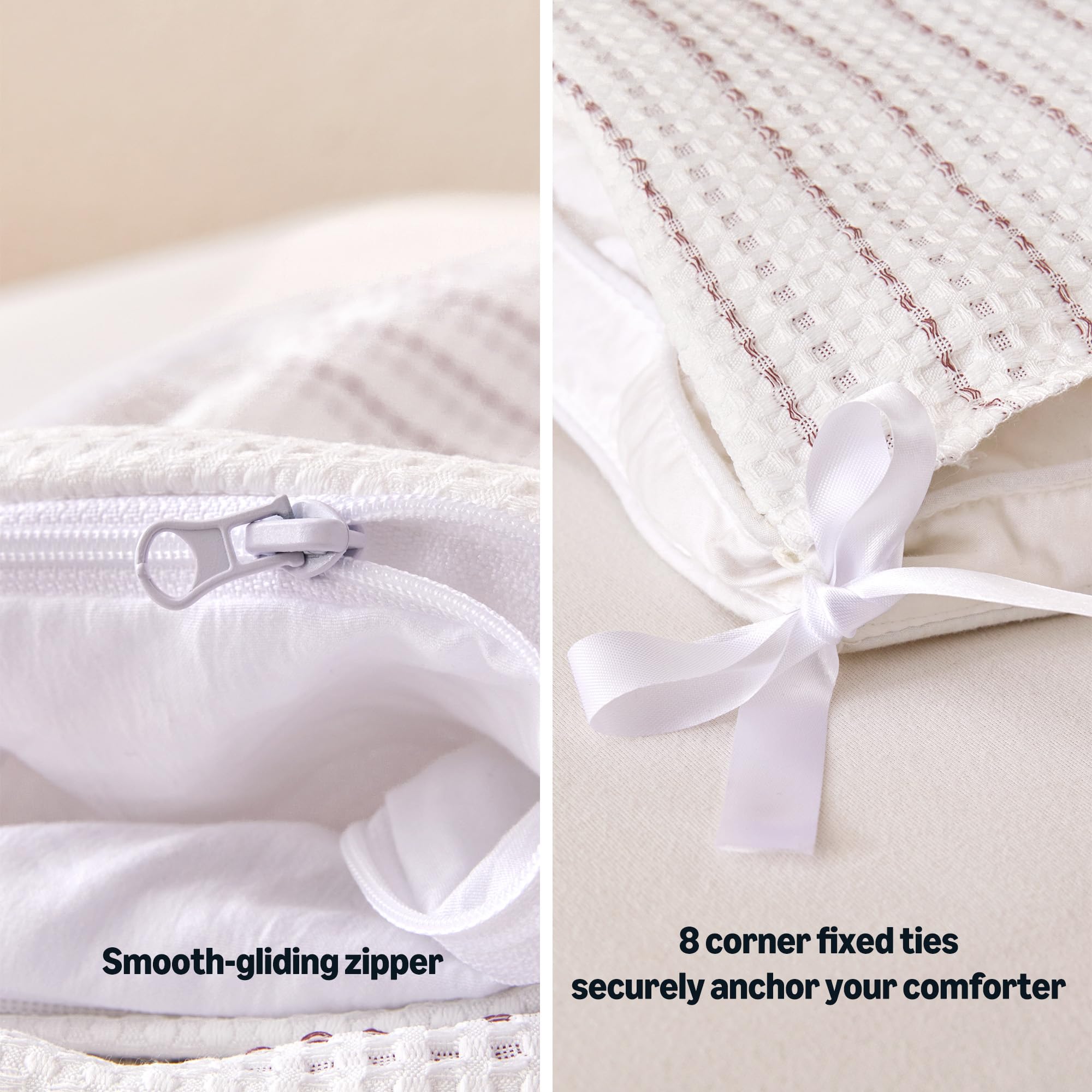 MODERN STRIPED DESIGN: Neutral waffle stripes blend with farmhouse or modern decor. Hidden envelope closure keeps comforters secure